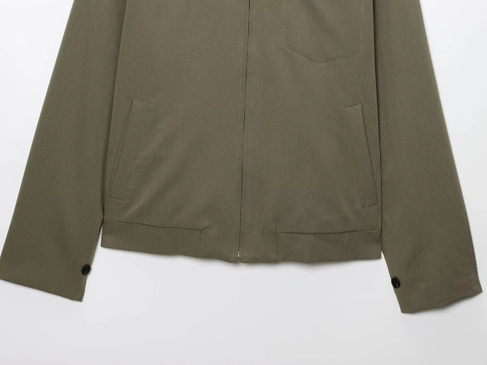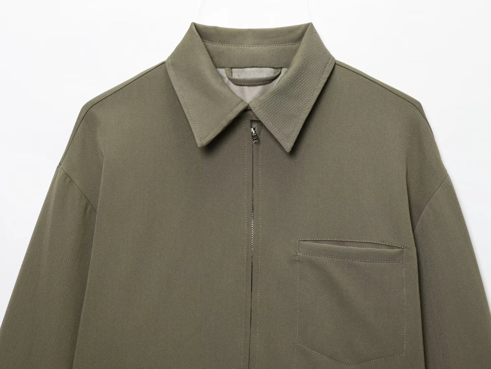 A jaqueta casual com lapela e zíper frontal foi feita para ser realmente all‑match: combina com vestido, jeans, saia, short e até roupa de trabalho. As mangas longas protegem do vento e do friozinho, enquanto o tecido leve garante conforto mesmo nos dias mais quentes. Os bolsos com zíper são perfeitos para levar celular, cartão e chave sem medo de perder.