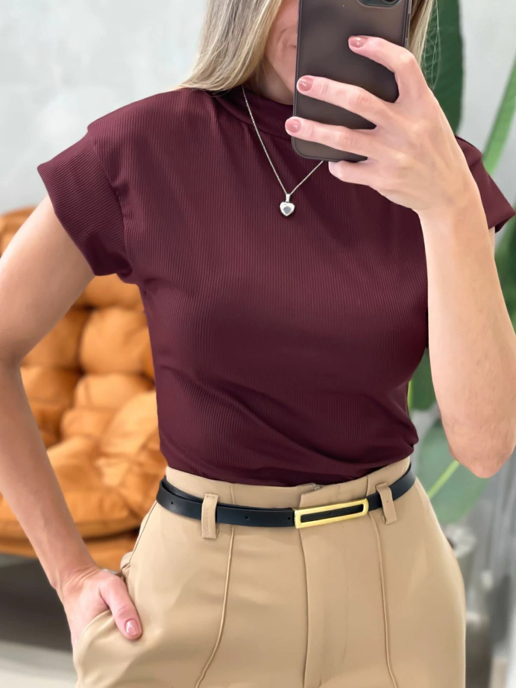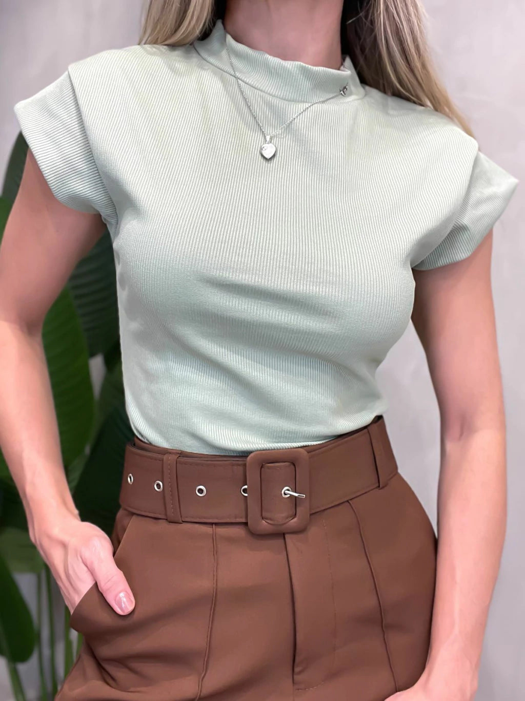 Blusa Feminina em Ribana Muscle Tee com Gola Tuane