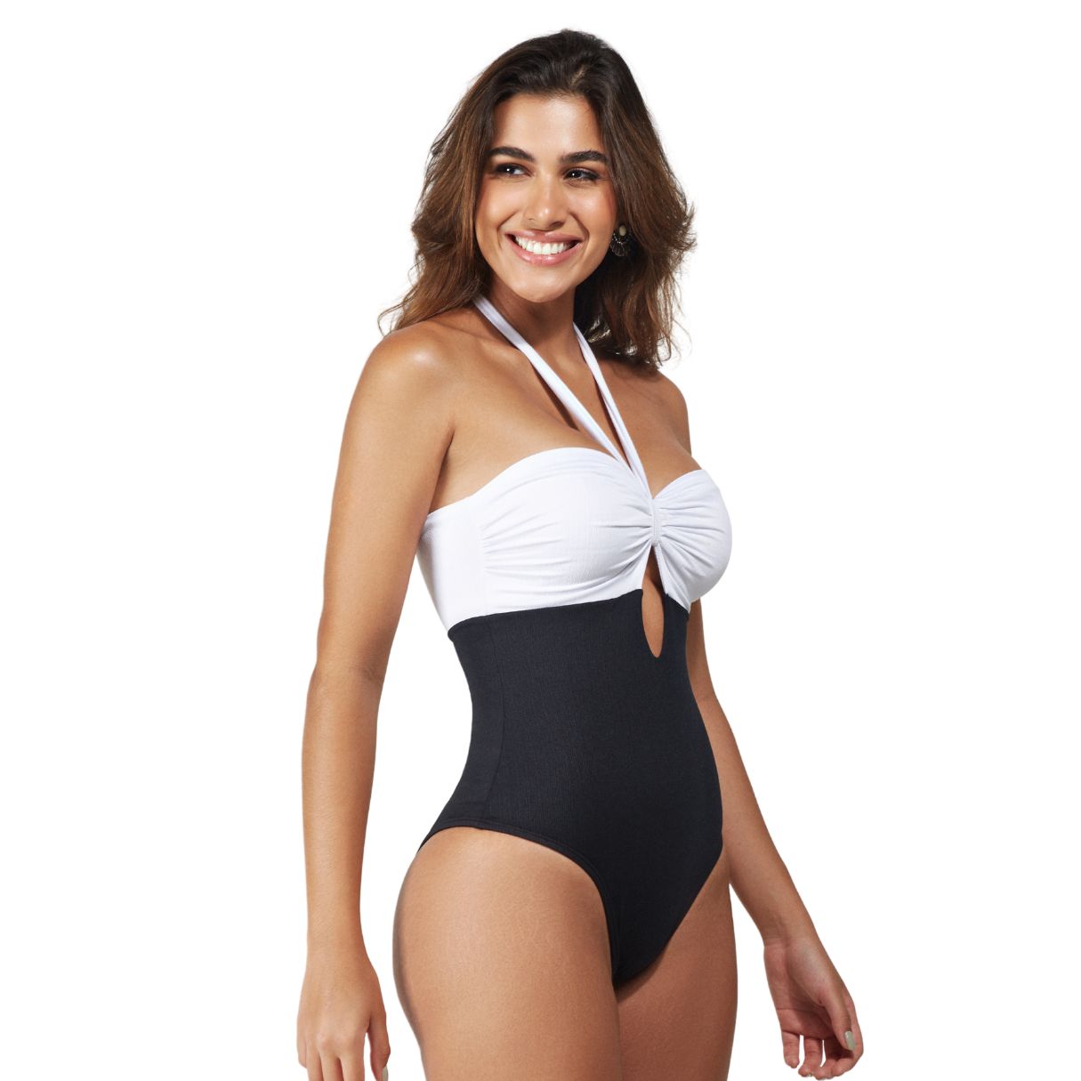 Body Maiô Busto Vazado com Bojo Fixo e amarrações.
